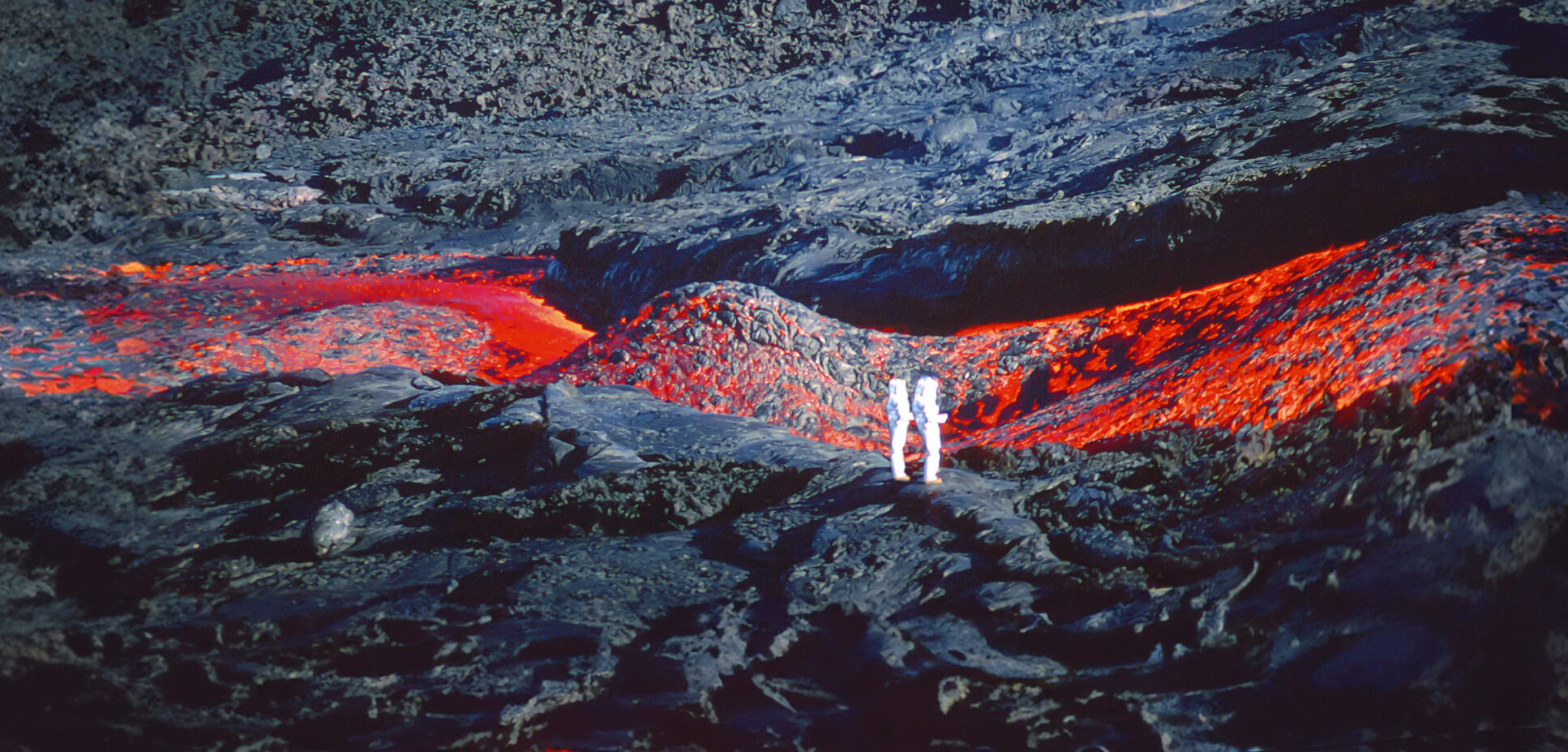 Par cette immersion dans les archives cinématographiques du couple, Herzog complète son œuvre documentaire consacrée aux volcans, commencée en 1977 avec La Soufrière et poursuivie en 2016 avec Au fin fond de la fournaise. Ce qui intéresse le cinéaste, c’est la manière dont les Krafft se mettent en scène, l’imagerie qu’ils déploient et la singularité de leur regard, depuis leurs premiers essais devant et derrière la caméra, jusqu’à de stupéfiantes séquences filmées par Maurice au plus près des éruptions.