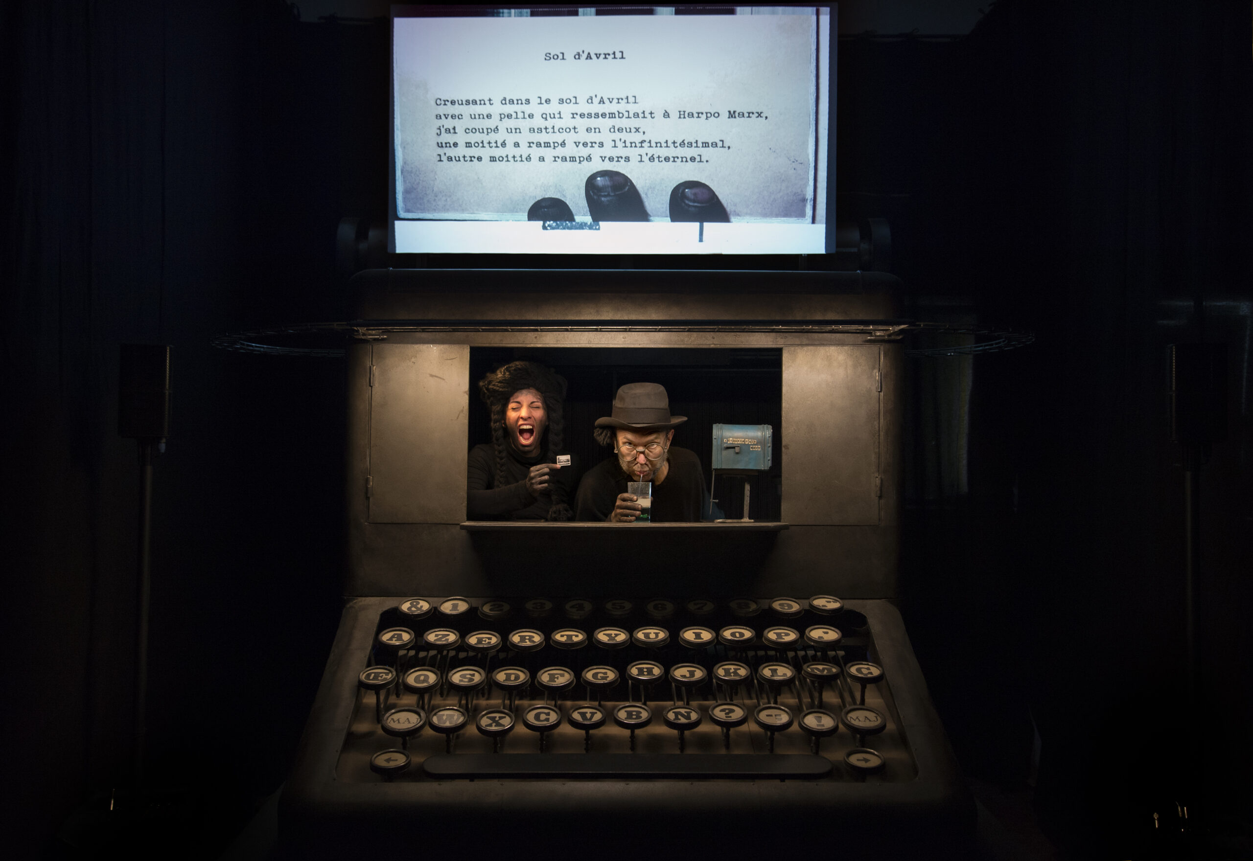 Ce spectacle enveloppe tout serré dans une machine-à-écrire géante : 2 personnages en chair et en os, du cinéma en direct et en boîte, des marionnettes, des mécanismes, des jeux d’ombres, du théâtre d'objet, de la délicatesse, une ligne ferroviaire, un facteur-poney, une speakerine à remonter-le-temps, des effets un peu spéciaux, du cinéma et beaucoup d’imaginaire.