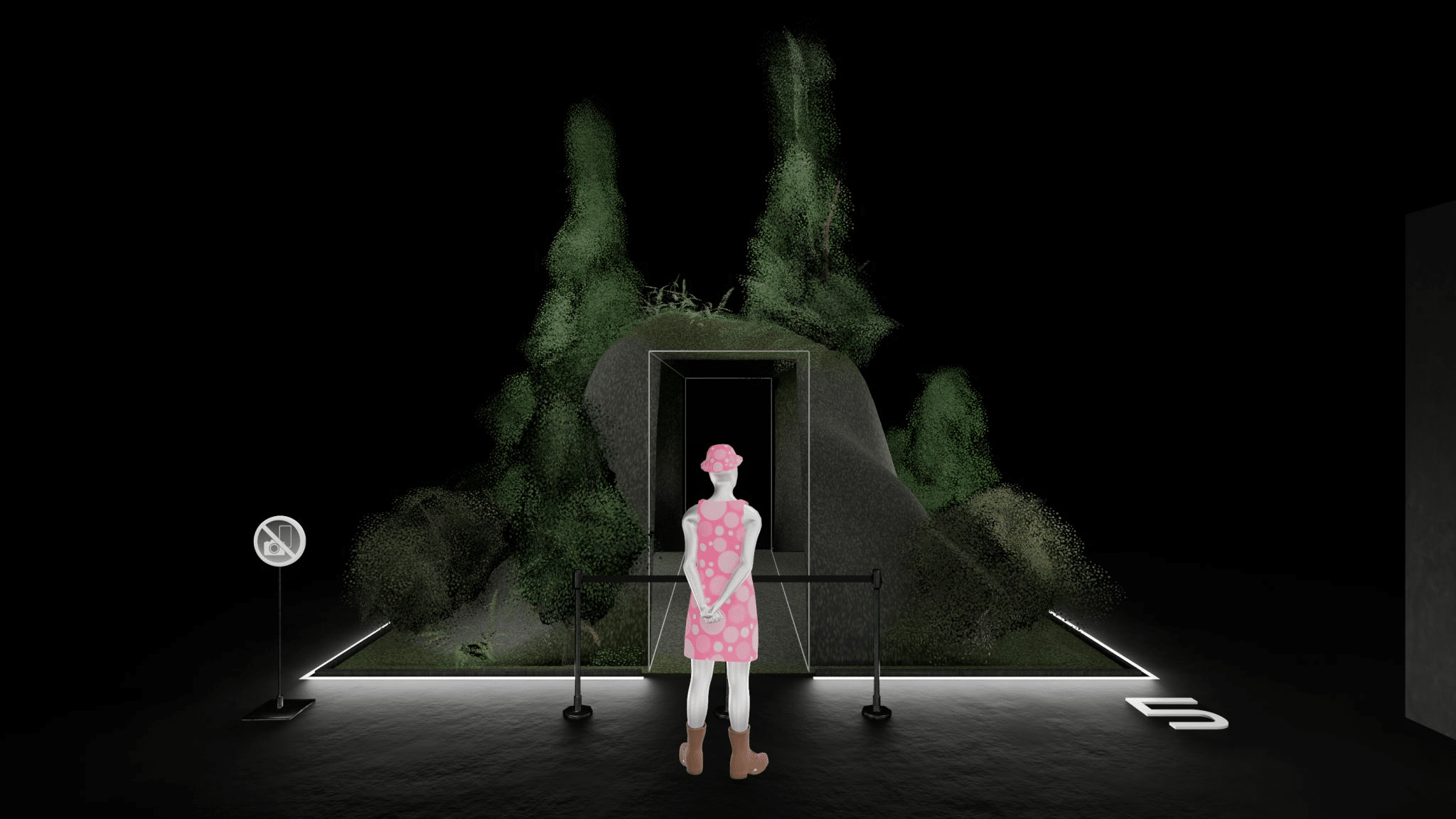 Dans une galerie virtuelle aseptisée, une forêt, numérisée et mise sous verre, devient objet d’art. Dans le casque de réalité virtuelle, les spectateurs visitent cette exposition aux côtés d’un public fictif. L’expérience va prendre un tour inattendu et les amènera à transgresser la limite "sacrée" entre l’œuvre et le public, les projetant au cœur de la forêt.