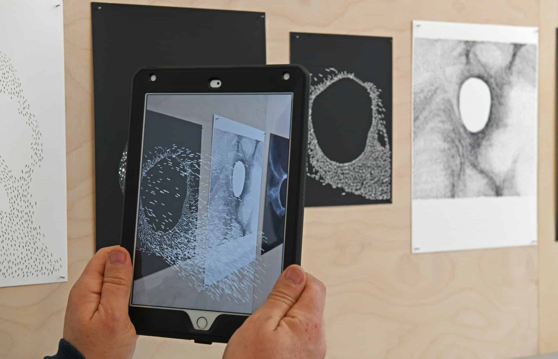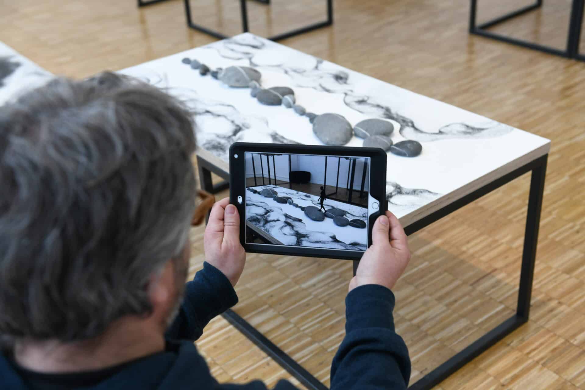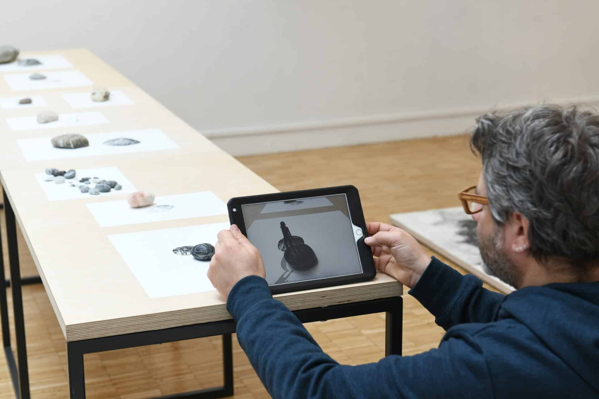 À travers des iPads se révèlent une animation en réalité augmentée enrichissant les dessins réalisés à la main ou une chorégraphie d’un danseur qui s’ajoute aux cailloux bien réels exposés. Les lithographies côtoient les images de synthèse, les théâtres optiques abritent des modèles physiques de mouvement… C’est un dialogue étroit et inédit qui relie le maintenant à l’hier, l’immobile au vivant.