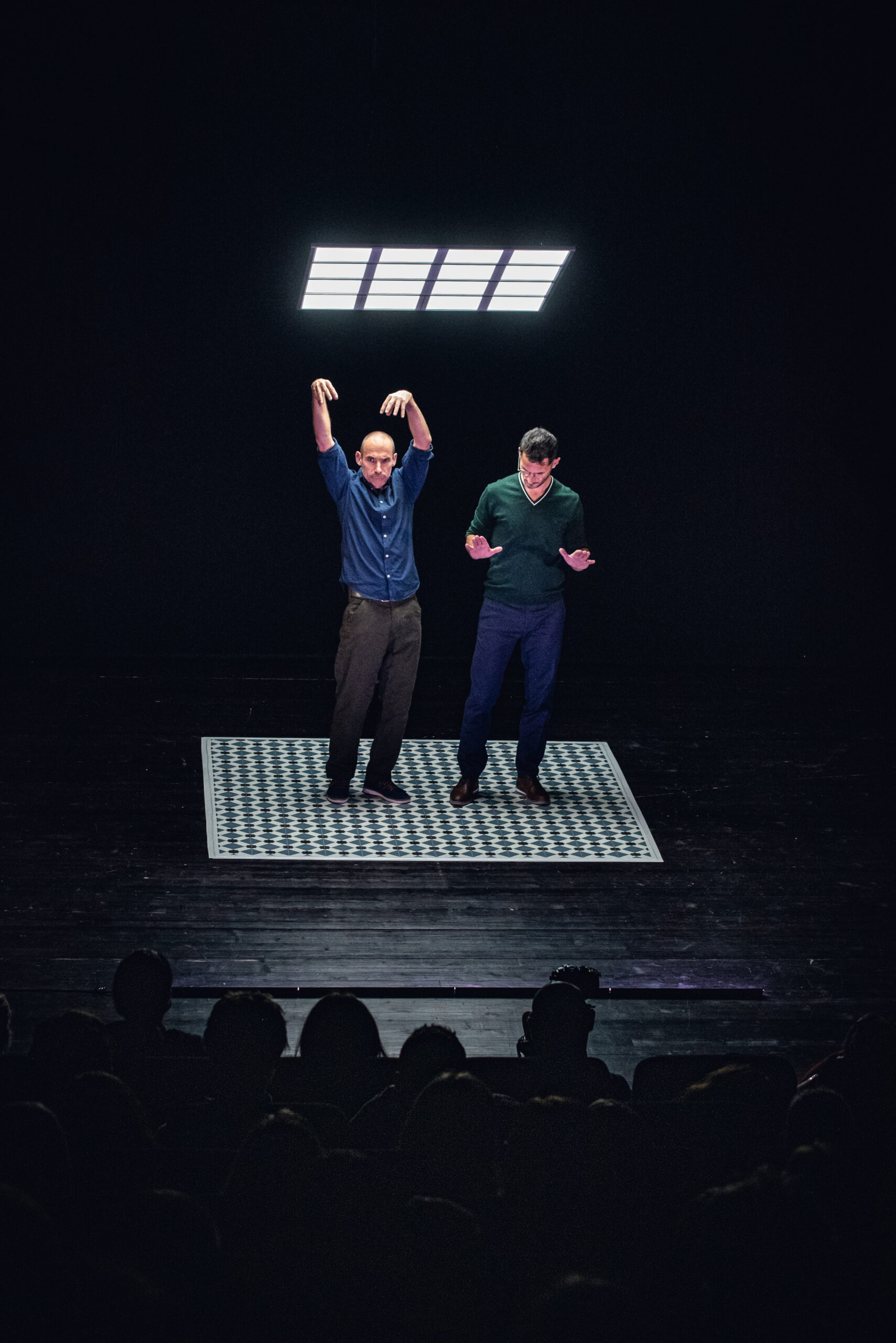 Le duo est un témoignage, le récit épique d’une première rencontre. Anthony sort d’un rendez-vous passionnant avec son architecte préférée alors que Denis vient de quitter déprimé son avocat. Lorsque l’ascenseur tombe en panne, ils se retrouvent face à face, obligés de communiquer. Sans moufle et sans aucun artifice de théâtre, avec leurs seules présences brutes, les deux causeurs interpellent le public oralement, manuellement, et chorégraphiquement.