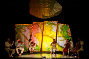 Sur scène, Kalthoum réunit harmonieusement musique live et chorégraphie, Mohanad Aljaramani accompagnant au oud,...